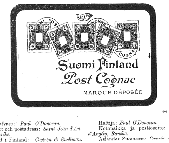 POST COGNAC I OFÄRDSTIDER (etikett 1902) Helsingfors Frimärkssamlare Förening G. Kock Address of this page: www.filatelia.fi/articles/urklipp.html